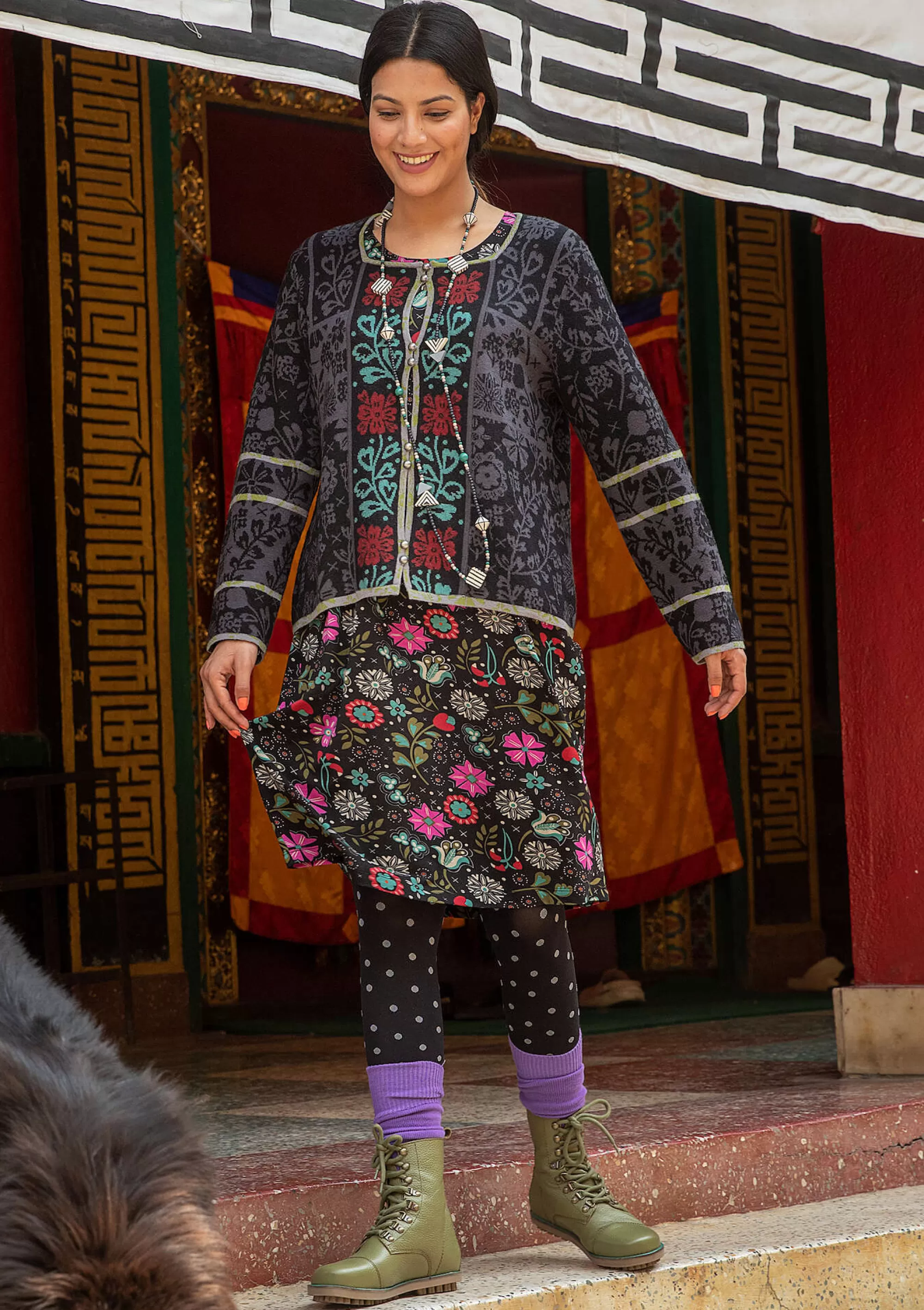 schwarz S,M,L,XL,XXL|Doppelseitige, üppig gemusterte Jacquardstrickjacke mit Blende vorne. Langarmmodell mit eckigem Ausschnitt und Metallknöpfen. ||