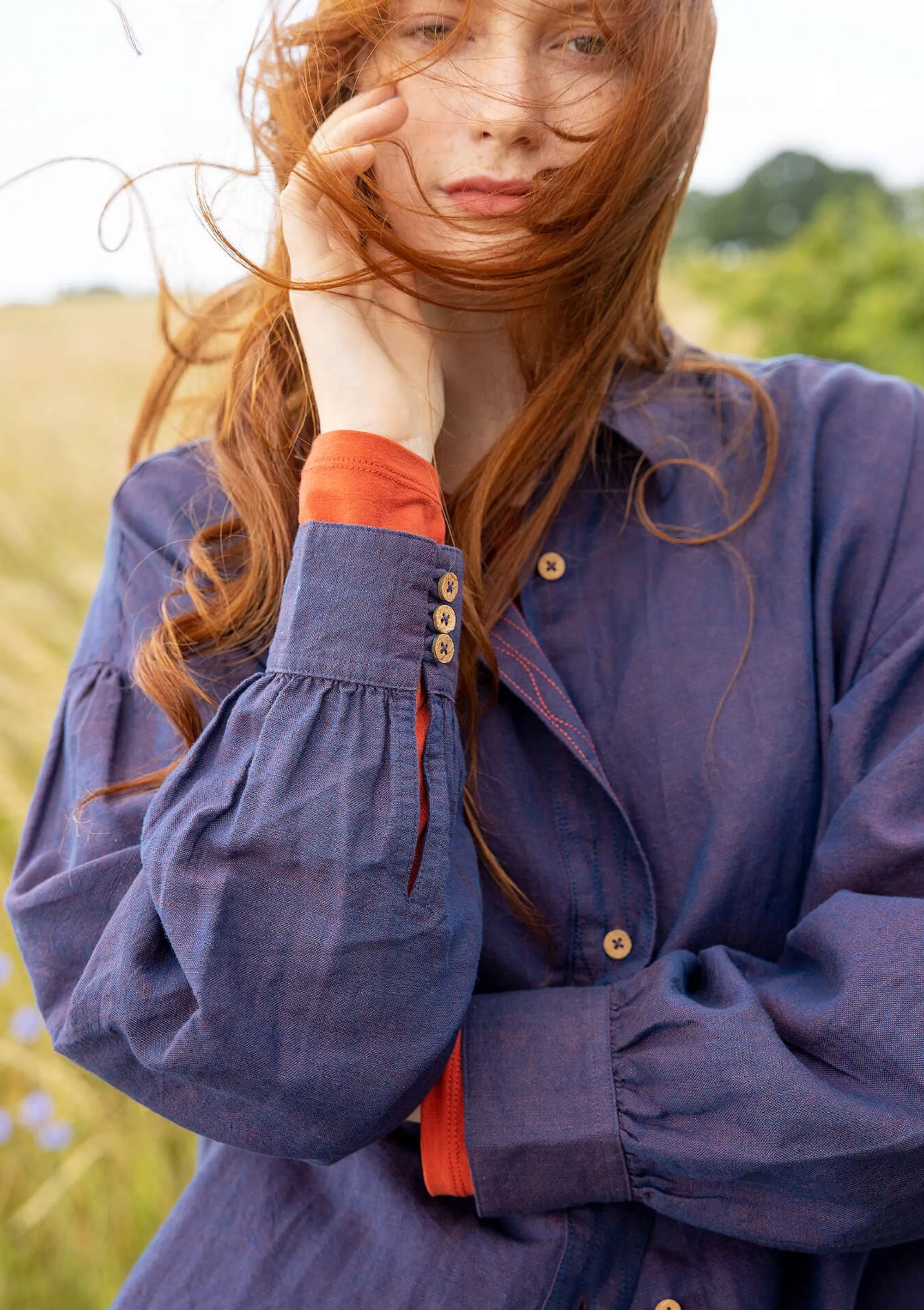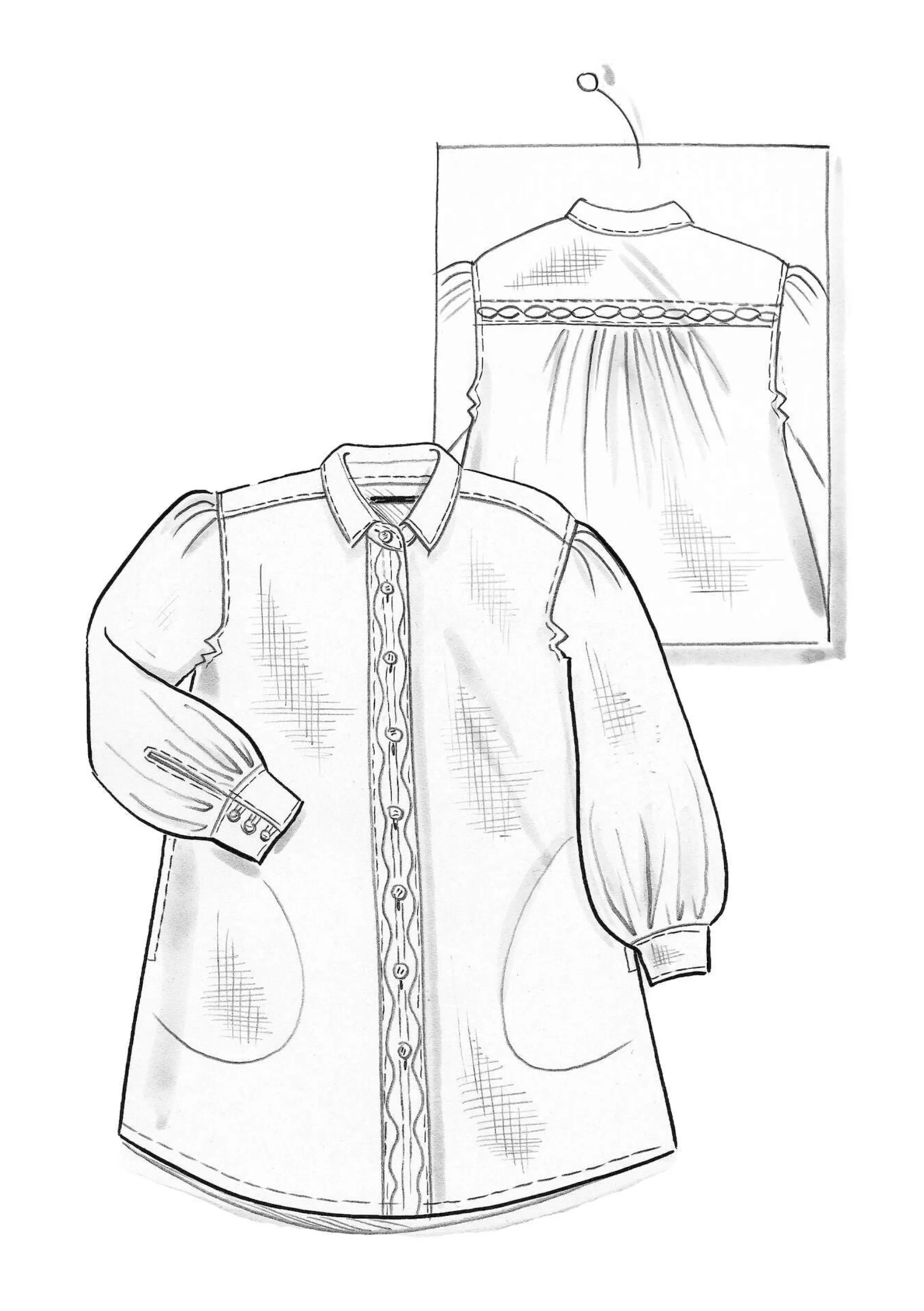 brombeere S,M,L,XL|Modell mit langen Manschettenärmeln. Kräuselung hinten und an den Schultern. Bestickte Knopfleiste …